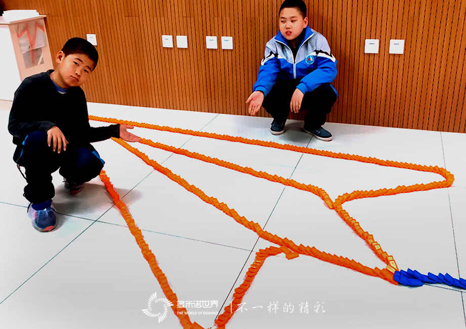 看著照片上一張張時而認真、時而開心的稚嫩臉龐,仿佛看到了同學(xué)們在多米諾課堂上的一舉一動,看到了一幅幅多米諾圖案經(jīng)過不斷的努力與堅持最終碼放完成的艱辛歷程。
