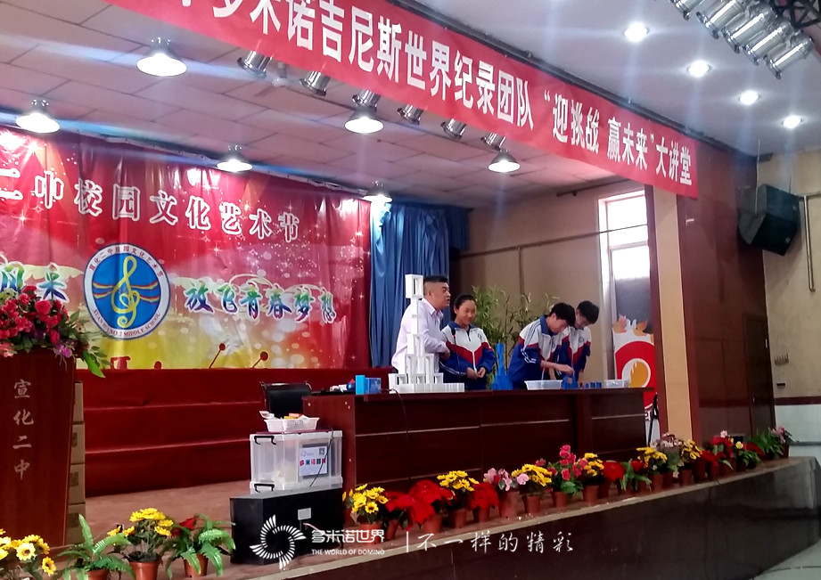 講座當天,主席臺懸掛的“宣化二中攜手多米諾吉尼斯紀錄團隊“迎挑戰(zhàn)、贏未來”大講堂”條幅分外耀眼,會場秩序井然、座無虛席。