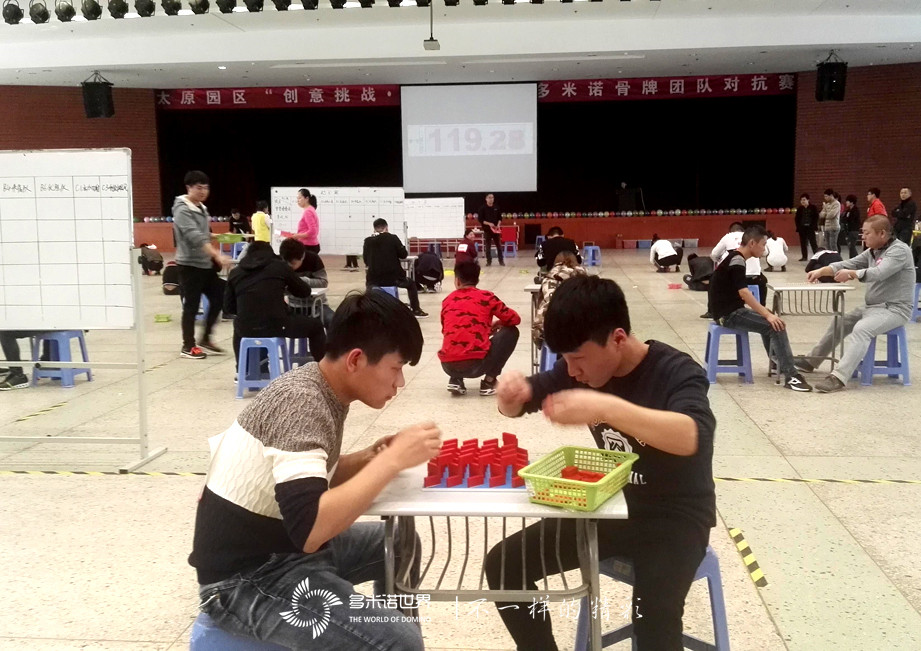 2016年11月20日,富士康太原園區(qū)“創(chuàng)意挑戰(zhàn),超越自我”多米諾骨牌團隊對抗賽開賽。初賽為淘汰賽,總共18支隊伍,288人參賽。