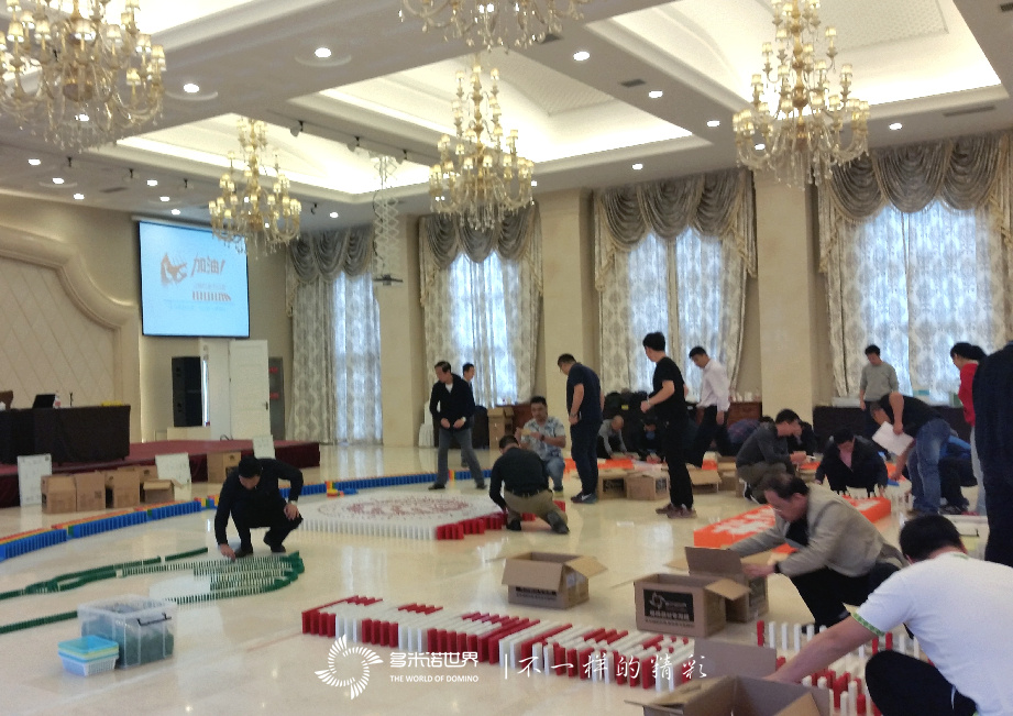 近3萬余枚骨牌,需要在5個小時內(nèi)擺放完成,對于80余位平均40歲以上的與會嘉賓,的確是個不小的挑戰(zhàn)。