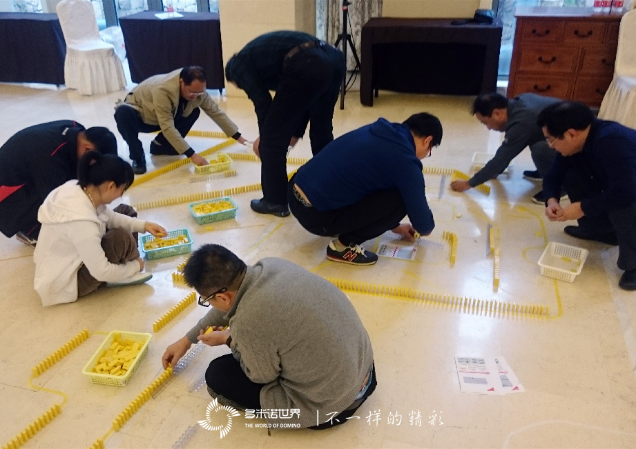 當(dāng)多米諾世界教練對于本次活動及多米諾骨牌擺放方法做了詳細(xì)講解之后,被隨機分成四組的嘉賓順序進(jìn)入場地,開始進(jìn)行多米諾骨牌擺放。