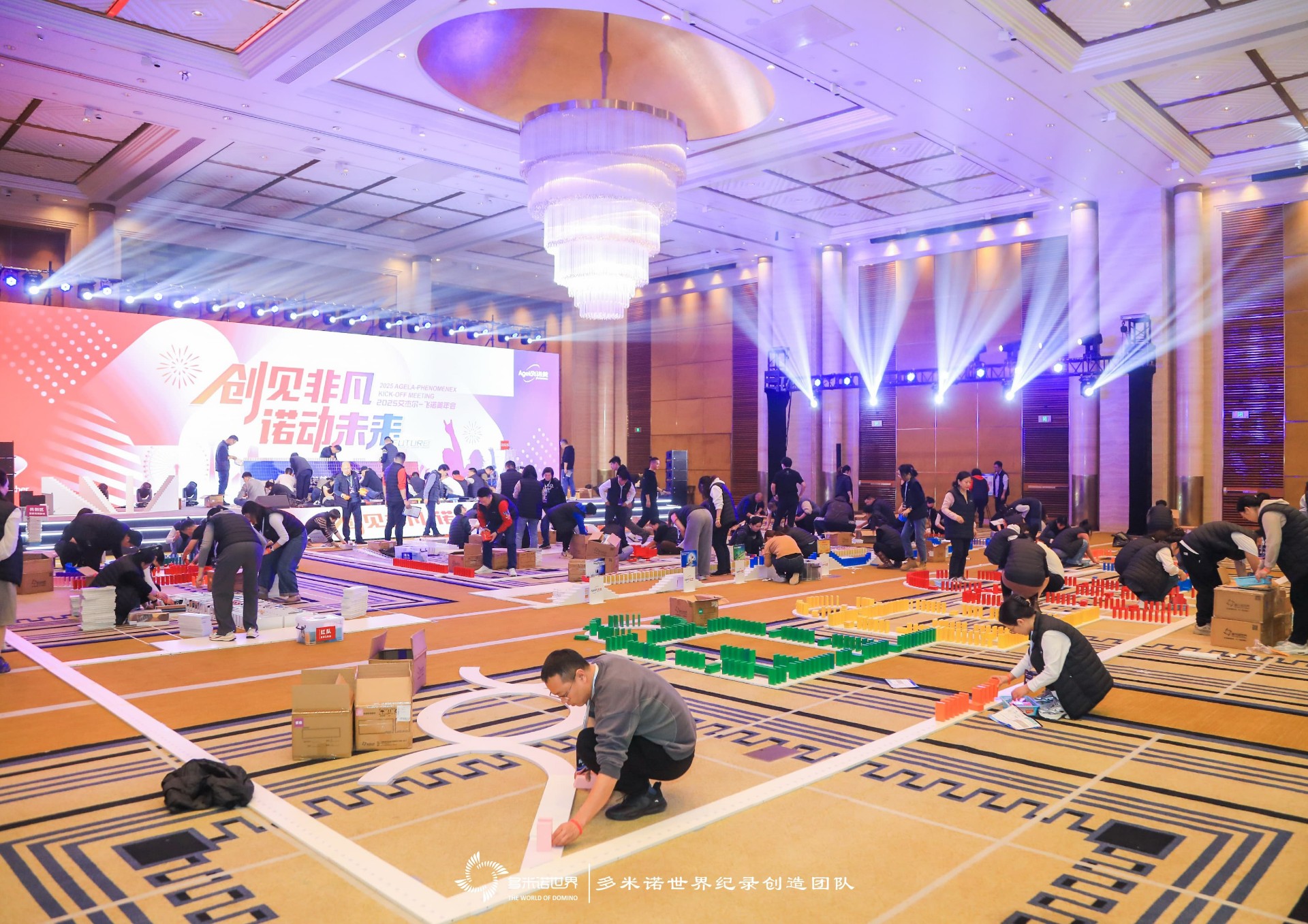 在多米諾世界老師的帶動下,現場氣氛瞬間被點燃,190位伙伴紛紛投入到創(chuàng)意拼搭與碼放多米諾骨牌的熱潮中,大家互相協作,明確分工,在經歷一次次挫折后,達成目標,完成了整幅畫面。
