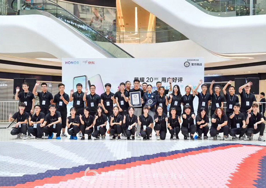 2019年8月11日,北京朝陽區(qū)銀河SOHO D座中庭,歷時8小時,隨著現(xiàn)場花粉手中最后一塊帶有榮耀總裁趙明對用戶感謝的賀卡的落地,一幅面積達(dá)161.85平米的巨型賀卡拼圖最終成形。吉尼斯世界紀(jì)錄官方現(xiàn)場認(rèn)證并宣布,榮耀x京東聯(lián)合百萬榮耀20系列用戶好評挑戰(zhàn)吉尼斯世界紀(jì)錄?榮譽(yù)成功,共同創(chuàng)造了“世界最大賀卡拼圖”新紀(jì)錄。