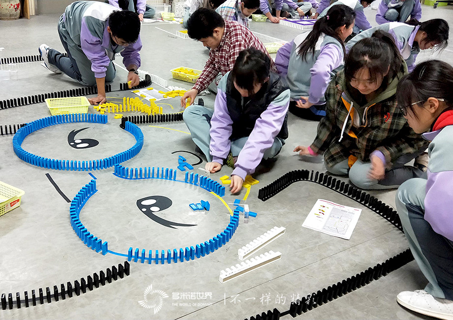 多米諾世界的老師,把同學(xué)們的創(chuàng)意構(gòu)想,設(shè)計(jì)成多米諾骨牌可以呈現(xiàn)的方案,并和同學(xué)們一起規(guī)劃場地,指導(dǎo)同學(xué)們完成骨牌碼放。