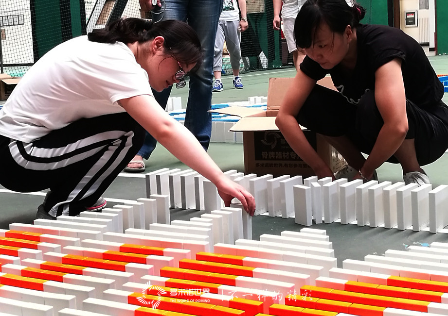 隊員們在各自隊長的帶領(lǐng)下,認(rèn)真碼放著每一枚多米諾骨牌,不懼失敗,不畏困難,雖然現(xiàn)場時有意外倒牌發(fā)生,卻沒有打倒隊員們的自信,在所有隊員的共同努力下,所有骨牌被成功碼放。
