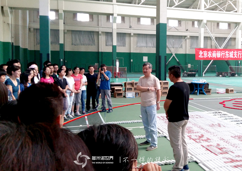 在骨牌最后連接過程中,作為本次活動啟動嘉賓的東城支行領(lǐng)導(dǎo),也被多米諾運動的魅力所吸引,親自上陣,同隊員們一起完成最后的骨牌碼放工作。當(dāng)隊員們看到平日的領(lǐng)導(dǎo)在和大家一起“戰(zhàn)斗”,并將最后一枚骨牌成功碼放時,掌聲隨之響起。