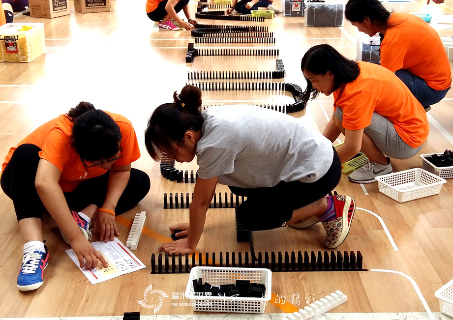 2016年8月6日上午十點(diǎn),數(shù)字家圓團(tuán)隊(duì)110余人,在多米諾世界團(tuán)隊(duì)的引領(lǐng)下,向多米諾骨牌運(yùn)動(dòng)發(fā)起挑戰(zhàn)。