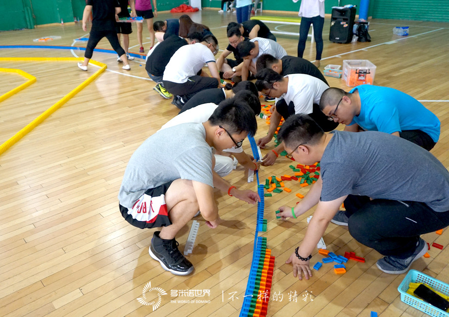 在骨牌碼放過程中,大家都認真按照多米諾世界專業(yè)老師的技術要求來碼放骨牌,并且很虛心地聽取專業(yè)老師的指導建議,每個人都各司其職,現(xiàn)場秩序井然。雖然過程中不免會有失誤和意外倒牌,也都是樂觀面對,團結協(xié)作,一起從頭再來。