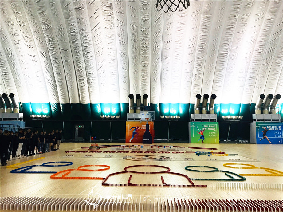 33名隊員在不到5個小時的時間里挑戰(zhàn)21000枚多米諾骨牌的碼放是一個不小的挑戰(zhàn)難度。富有難度的挑戰(zhàn),提升了隊員們的斗志,明確的分工,隊員們很快進入到熟練操作和碼放的狀態(tài),骨牌畫面在大家的齊心協(xié)力下很快搭建起來,最終提前30分鐘完成挑戰(zhàn)任務(wù),21000枚骨牌成功碼放完成。