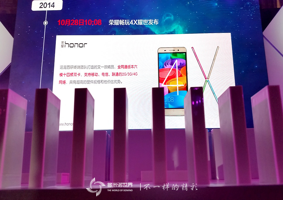 榮耀暢玩4X千萬銷量答謝會(huì)現(xiàn)場(chǎng),啟動(dòng)了由多米諾世界團(tuán)隊(duì)設(shè)計(jì)擺放的象征榮耀暢玩4X千萬銷量的多米多骨牌方陣,共同慶祝榮耀單品突破千萬銷量這一歷史時(shí)刻。