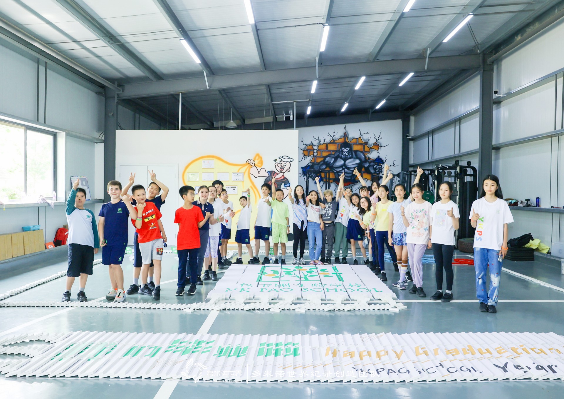 2023年5月14日,來自YK Pao School 5D班的26個(gè)孩子相聚在一起,在畢業(yè)旅行中共同完成了一幅多米諾共創(chuàng)作品,作為一份特殊的畢業(yè)禮物,送給自己也獻(xiàn)給母校。