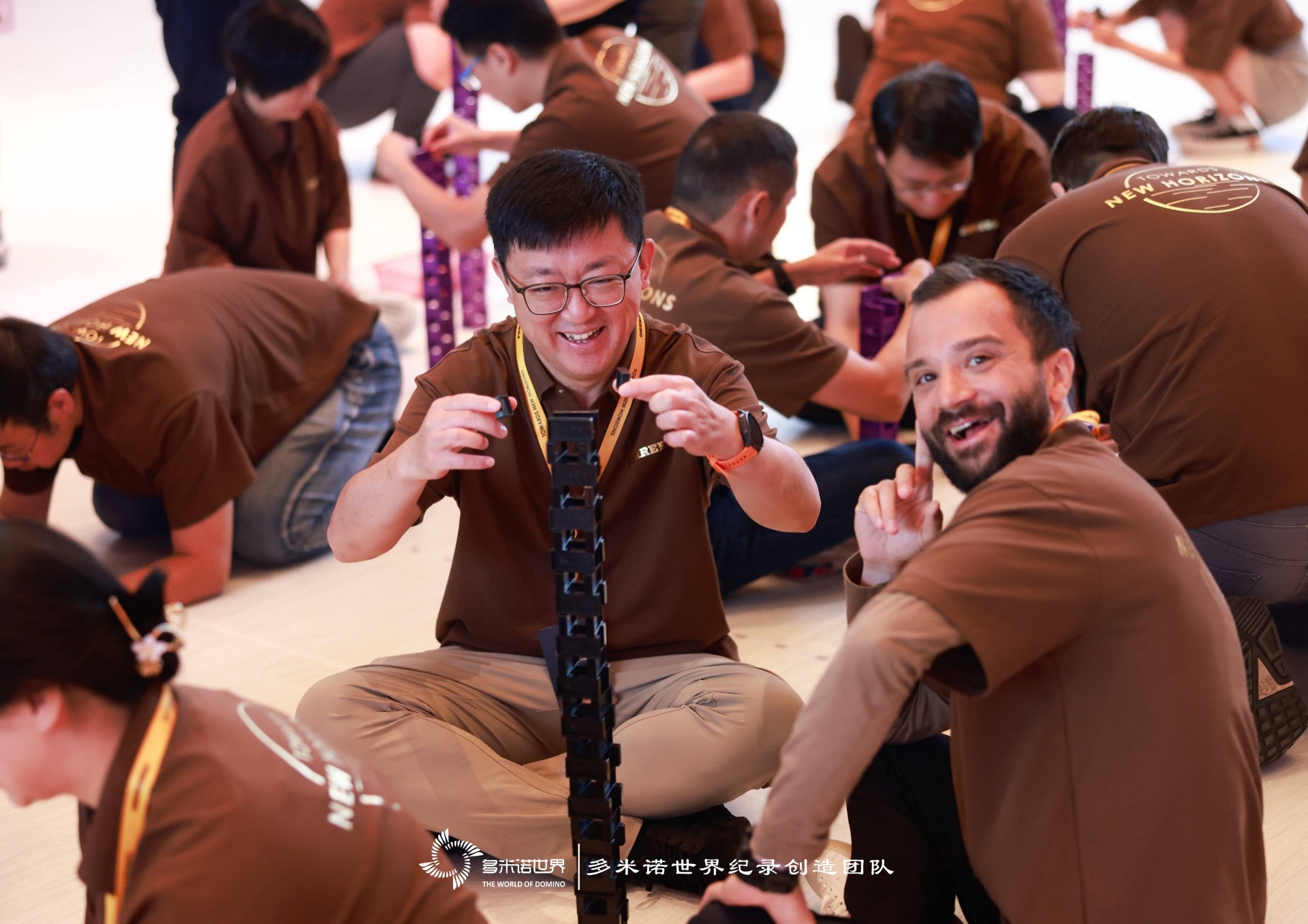 彩色的多米諾骨牌排列形成各種圖案和形狀,經過兩個小時的努力,一幅巨大多米諾作品完成。在全場共同倒計時聲中,嘉賓觸發(fā)一枚費列羅巧克力,隨之聯動骨牌順利行進,骨牌呈現出的畫面變得栩栩如生,產品的輪廓和細節(jié)躍然于眼前。隨著骨牌畫面的依次呈現,為伙伴們帶來了無盡的驚喜和愉悅,這些大家親身體驗,共同努力創(chuàng)造出來的成果,看起來尤為親切,在收獲成功喜悅的同時,在共創(chuàng)過程中更拉近了伙伴間的距離。