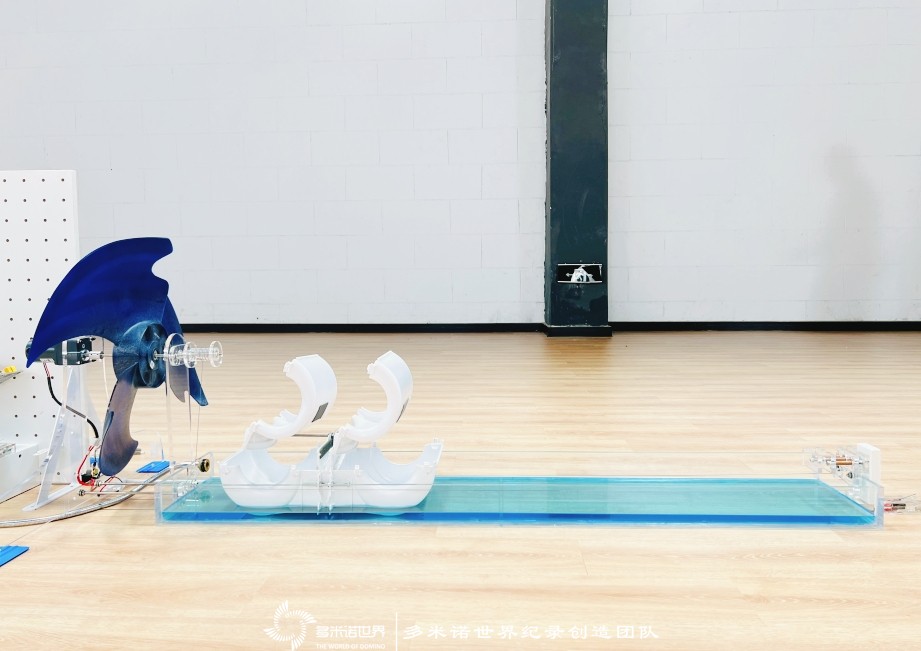 “戈德堡裝置整體處于一個微平衡狀態(tài),而我們需要通過這種機關(guān)之間的聯(lián)動打破這個微平衡,讓力可以繼續(xù)傳導(dǎo)下去,“來自多米諾世界的成員王磊老師解釋道。
