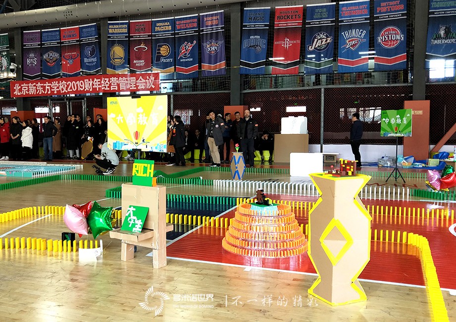 2018年12月27日,樂滿意與多米諾世界再次攜手,在北京新東方學校的2019財年經營管理會議上,組織與會的近70位高管,用多米諾骨牌、樂高積木、瓦楞紙、機關裝置、機器人,組建大型聯(lián)動裝置-新東方智慧城市。