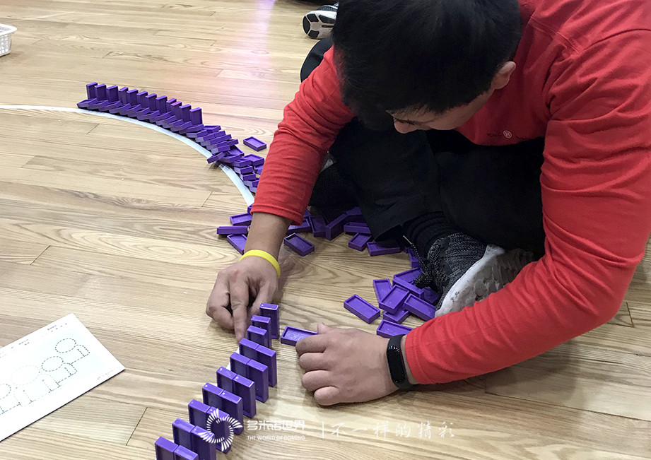 活動(dòng)開(kāi)始后,多米諾世界的老師細(xì)致講解了今天的活動(dòng)目標(biāo)、任務(wù)內(nèi)容和完成方法后,小伙伴們信心滿滿地進(jìn)入場(chǎng)地,分組進(jìn)行骨牌碼放。身著紅色的服裝小伙伴們認(rèn)真完成著自己的骨牌碼放任務(wù),遠(yuǎn)遠(yuǎn)看去就像一簇簇紅色的火焰在流動(dòng),一片紅紅火火的景象。