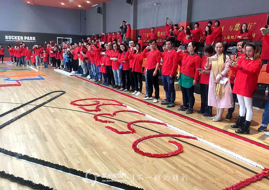 隨著地面上碼放起來(lái)的骨牌越來(lái)越多,意外倒牌的情況也漸漸多了起來(lái),面對(duì)倒在地面上的骨牌,小伙伴們?cè)谕锵е啵S即振奮精神從頭再來(lái),憑借著這份執(zhí)著與熱情,以及所有小伙伴3個(gè)小時(shí)的全情投入、共同努力,40000余枚骨牌最終成功碼放,多米諾骨牌組成的精美畫(huà)卷如期展現(xiàn)在大家面前。