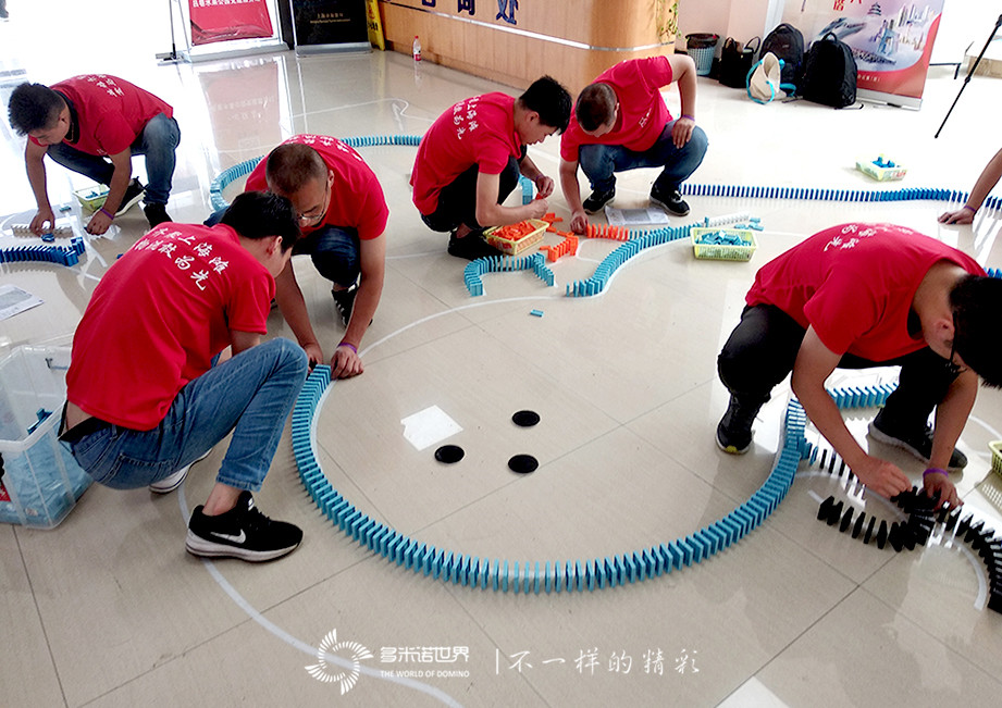 活動(dòng)在有條不紊的進(jìn)行中,一枚枚骨牌被豎立碼放,一幅幅圖案漸漸成形,雖然意外倒牌時(shí)有發(fā)生,卻沒有打亂活動(dòng)的節(jié)奏,大家依然在認(rèn)真努力地完成著骨牌碼放任務(wù),并最終按時(shí)完成了團(tuán)隊(duì)挑戰(zhàn)任務(wù)。