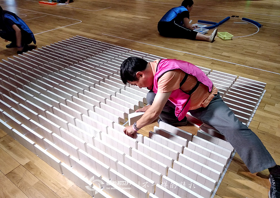 內容豐富的設計方案,在增強了畫面精彩度的同時,也增加了活動的實施難度,同時也體現(xiàn)了這支廣發(fā)團隊的做事態(tài)度與精神風貌。活動中,大家認真學習骨牌碼放技巧,仔細碼放每一枚骨牌,并且明確任務分工、每人各司其職,整個活動現(xiàn)場緊張而有序。